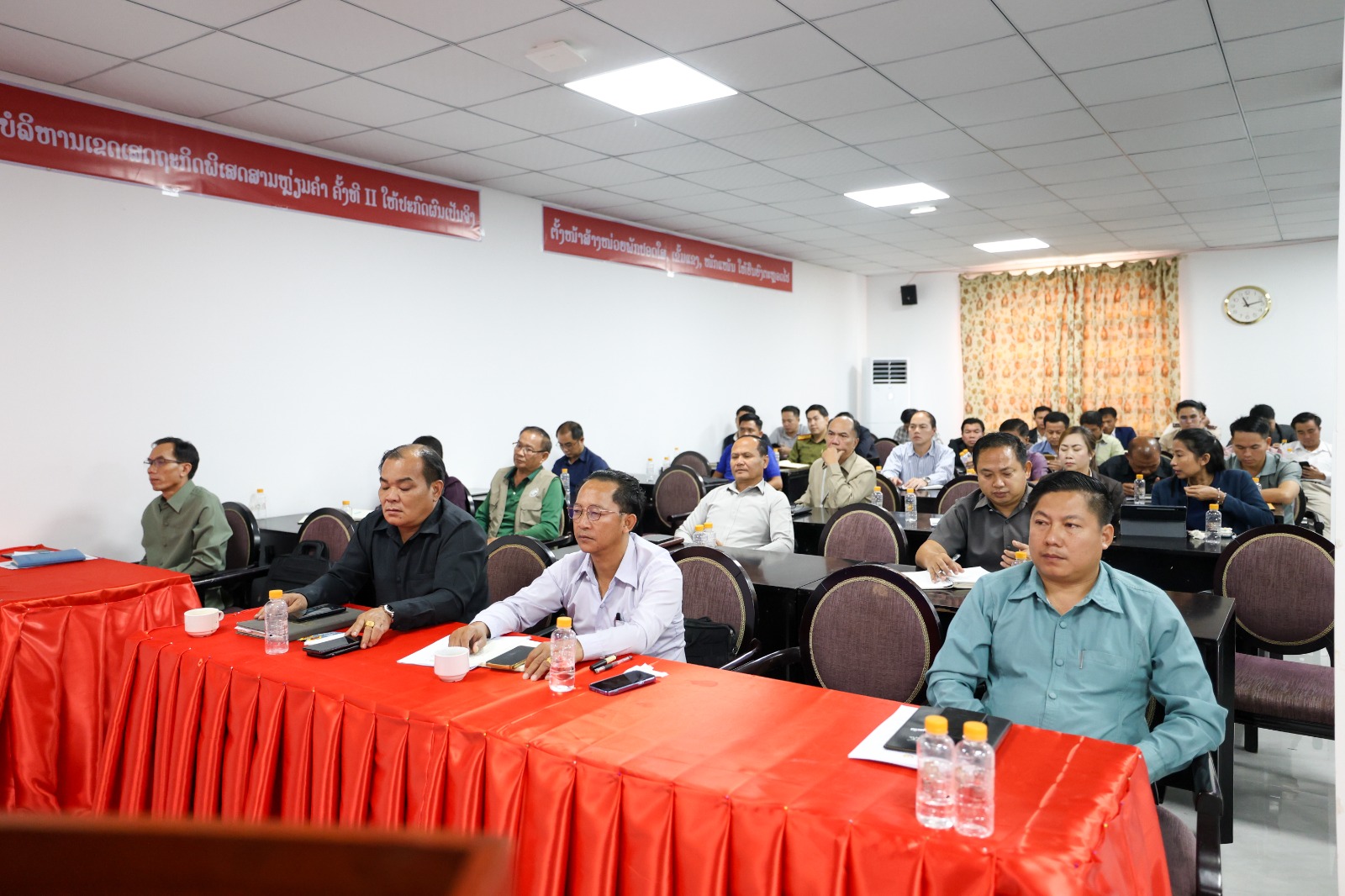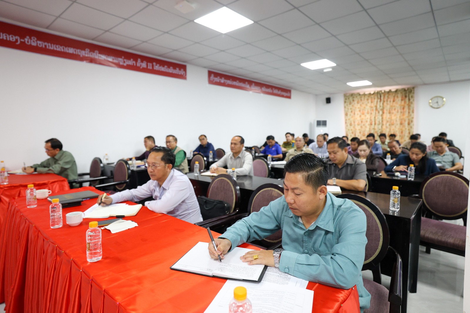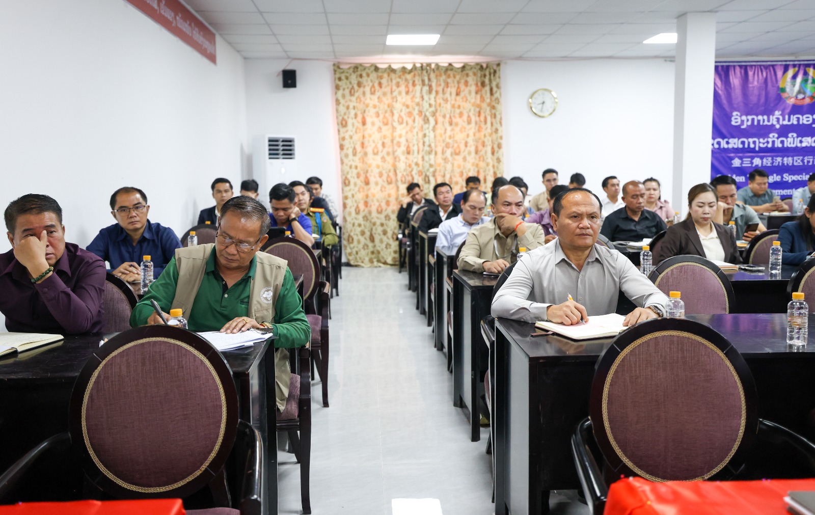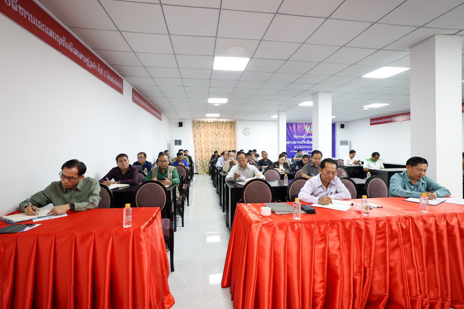 ກອງປະຊຸມໜ່ວຍພັກອົງການຄຸ້ມຄອງ-ບໍລິຫານເຂດເສດຖະກິດພິເສດສາມຫຼ່ຽມຄຳ, ເມືອງຕົ້ນເຜິ້ງ, ແຂວງບໍ່ແກ້ວ ປະຈຳໄຕມາດທີ 3 ແລະ ວາງແຜນທິດທາງແຜນການປະຈຳປີ 2025 ເຊິ່ງກອງປະຊຸມໄດ້ໄຂຂຶ້ນໃນວັນທີ 24 ຕຸລາ 2025 ຢູ່ທີ່ຫ້ອງປະຊຸມອົງການຄຸ້ມຄອງ-ບໍລິຫານເຂດເສດຖະກິດພິເສດສາມຫຼ່ຽມຄຳ; ໂດຍການເປັນປະທານຂອງສະຫາຍ ຄຳສະແຫວງ ວິໄລພົງ ເລຂາໜ່ວຍພັກ, ຮັກສາການຫົວໜ້າອົງການຄຸ້ມຄອງ-ບໍລິຫານເຂດເສດຖະກິດພິເສດສາມຫຼ່ຽມຄຳ ພ້ອມດ້ວຍຮອງເລຂາໜ່ວຍພັກ, ກຳມະການໜ່ວຍພັກ, ສະມາຊິກພັກສົມບູນ, ສຳຮອງ, ຫົວໜ້າຮອງຫົວໜ້າຫ້ອງການປິ່ນອ້ອມເຂົ້າຮ່ວມ.