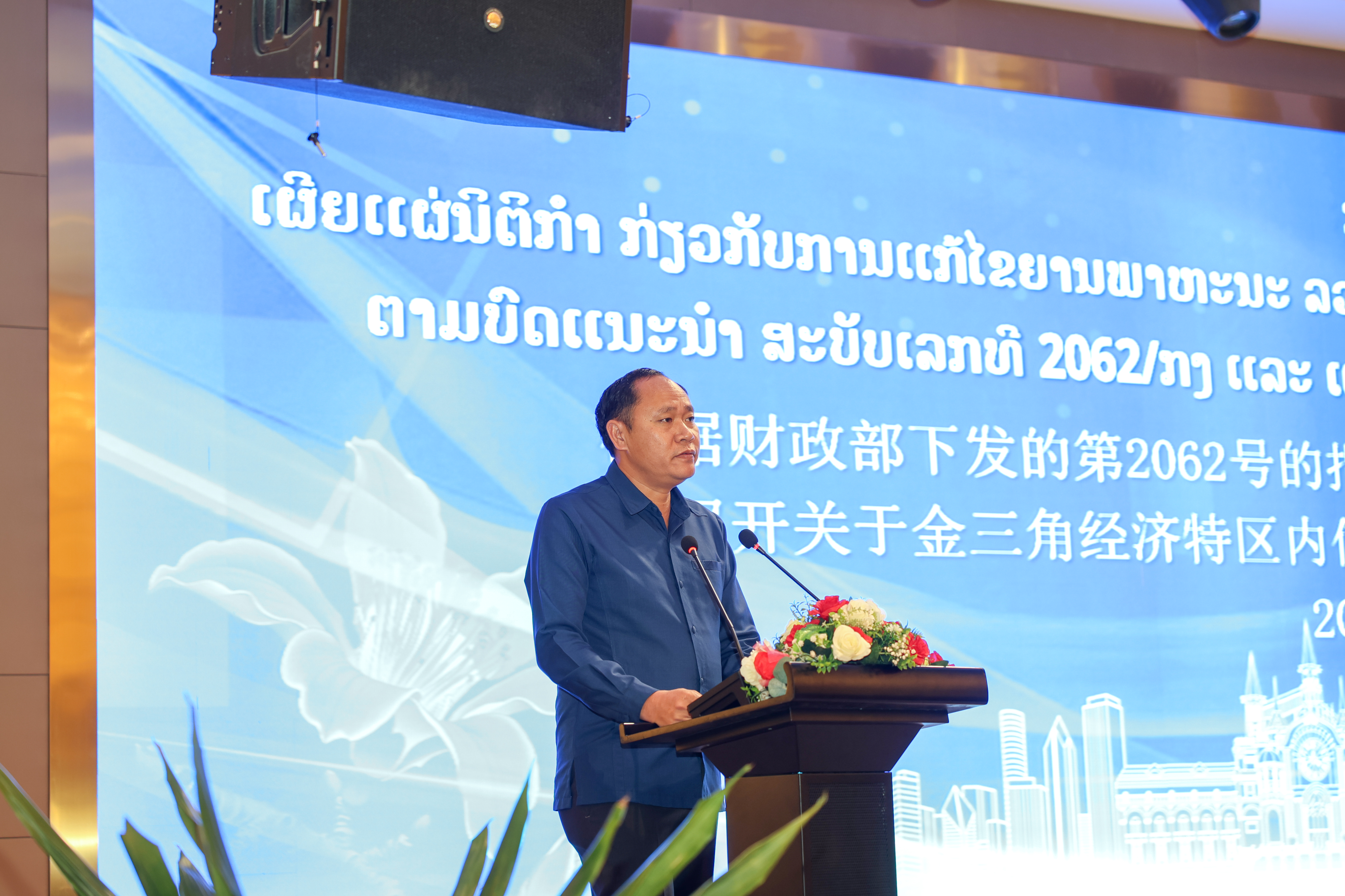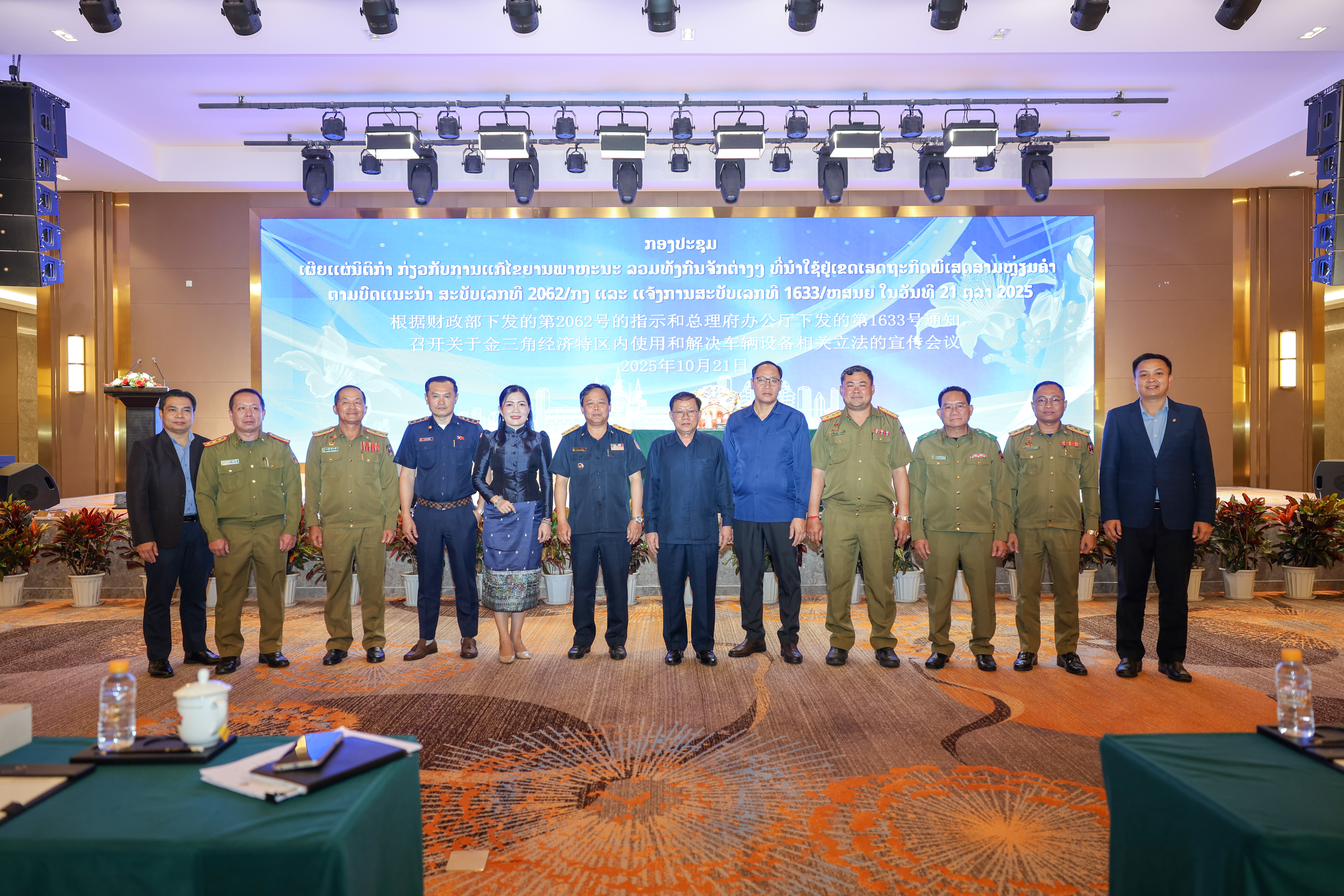 ໃນວັນທີ 21 ຕຸລາ 2025 ທີ່ຫ້ອງປະຊຸມໂຮງແຮມດາວດອກງິ້ວຄຳ ໄດ້ຈັດມີກອງປະຊຸມເຜີຍແຜ່ນິຕິກຳກ່ຽວກັບການແກ້ໄຂຍານພາຫະນະລວມທັງກົນຈັກຕ່າງໆທີ່ນຳໃຊ້ ຢູ່ເຂດເສດຖະກິດພິເສດສາມຫຼ່ຽມຄໍາ, ເມືອງຕົ້ນເຜິ້ງ, ແຂວງບໍ່ແກ້ວ. ໂດຍເປັນປະທານຂອງທ່ານ ພົທ ຄຳກິ່ງ ຜຸຍຫຼ້າມະນີວົງ ຮອງລັດຖະມົນຕີກະຊວງປ້ອງກັນຄວາມສະຫງົບ, ຫົວໜ້າສະເພາະກິດຕາມຂໍ້ຕົກລົງສະບັບເລກທີ 47/ນຍ, ມີທ່ານ ຄຳສະແຫວງ ວິໄລພົງ ຮັກສາການຫົວໜ້າອົງການຄຸ້ມຄອງ-ບໍລິຫານເຂດເສດຖະກິດພິເສດສາມຫຼ່ຽມຄຳ, ມີຄະນະສະເພາະກິດຂັ້ນສູນກາງ, ຫົວໜ້າກົມ, ຮອງຫົວໜ້າກົມ, ພ້ອມດ້ວຍພະແນກການກ່ຽວຂ້ອງຂອງແຂວງ, ອົງການຄຸ້ມຄອງ-ບໍລິຫານເຂດ, ສະພາບໍລິຫານເຂດ, ນັກທຸລະກິດ, ຜູ້ປະກອບການ, ພໍ່ຄ້າຊາວຂາຍ ແລະ ພາກສ່ວນກ່ຽວຂ້ອງເຂົ້າຮ່ວມ.